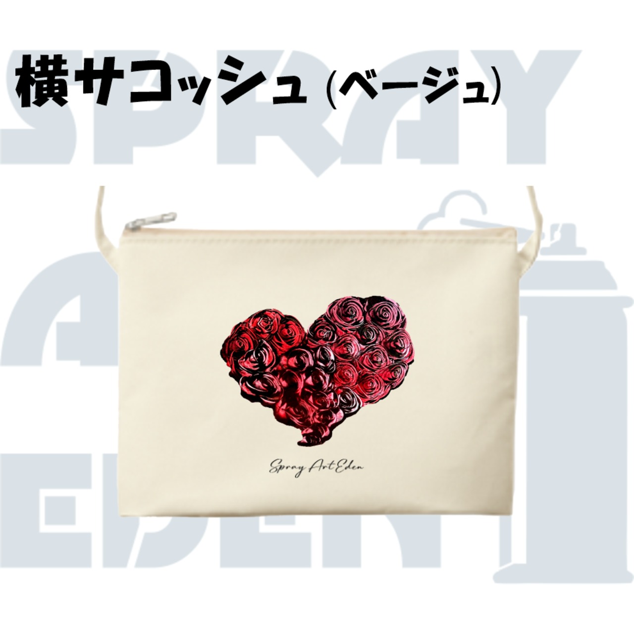 【横サコッシュ (ベージュ)】5201. 赤バラ
