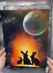 梅ちゃんは絵が描けないので絵の元デザインは他のアーティスト様とのコラボのものや、海外のアーティスト様から許可をもらったもの、商用okなデザインを購入したものから制作してます!!