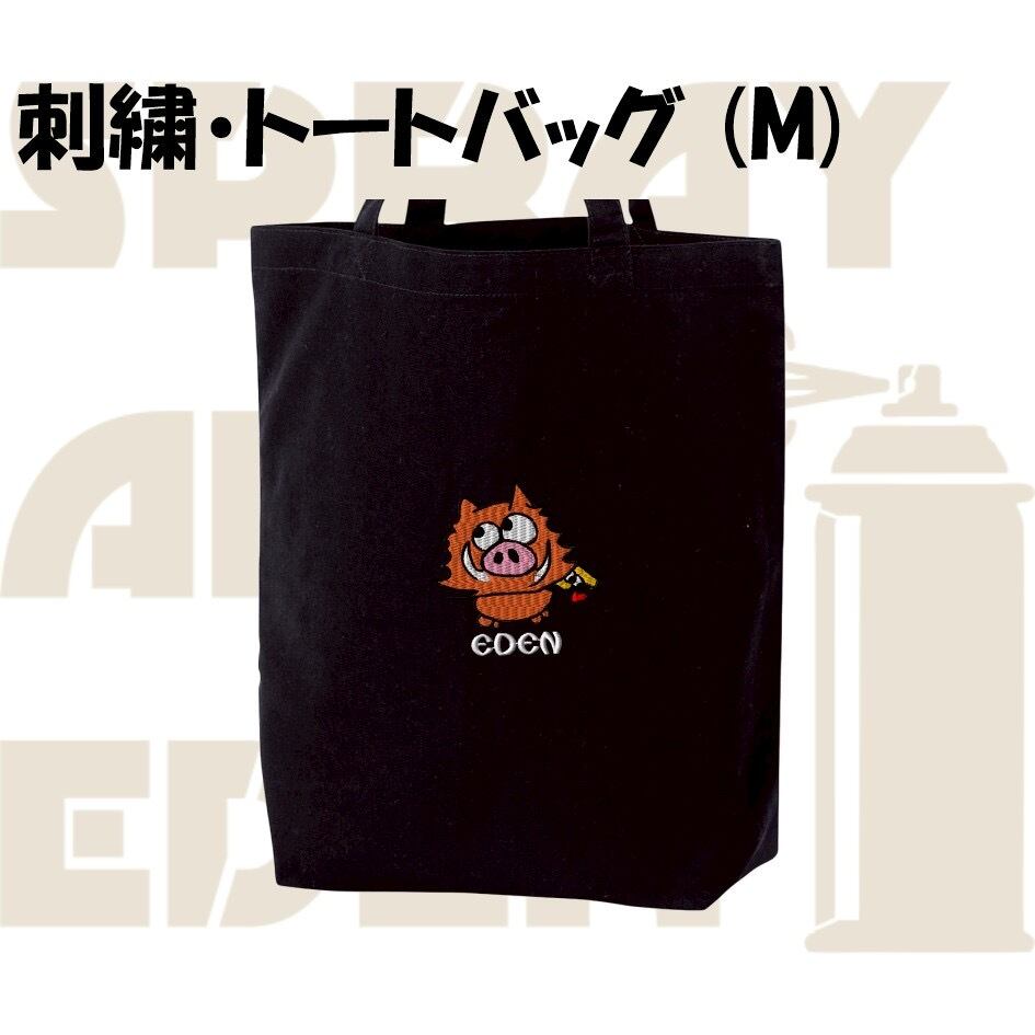 【刺繍・トートバッグ(M)・ブラック】PO297. イノシシ