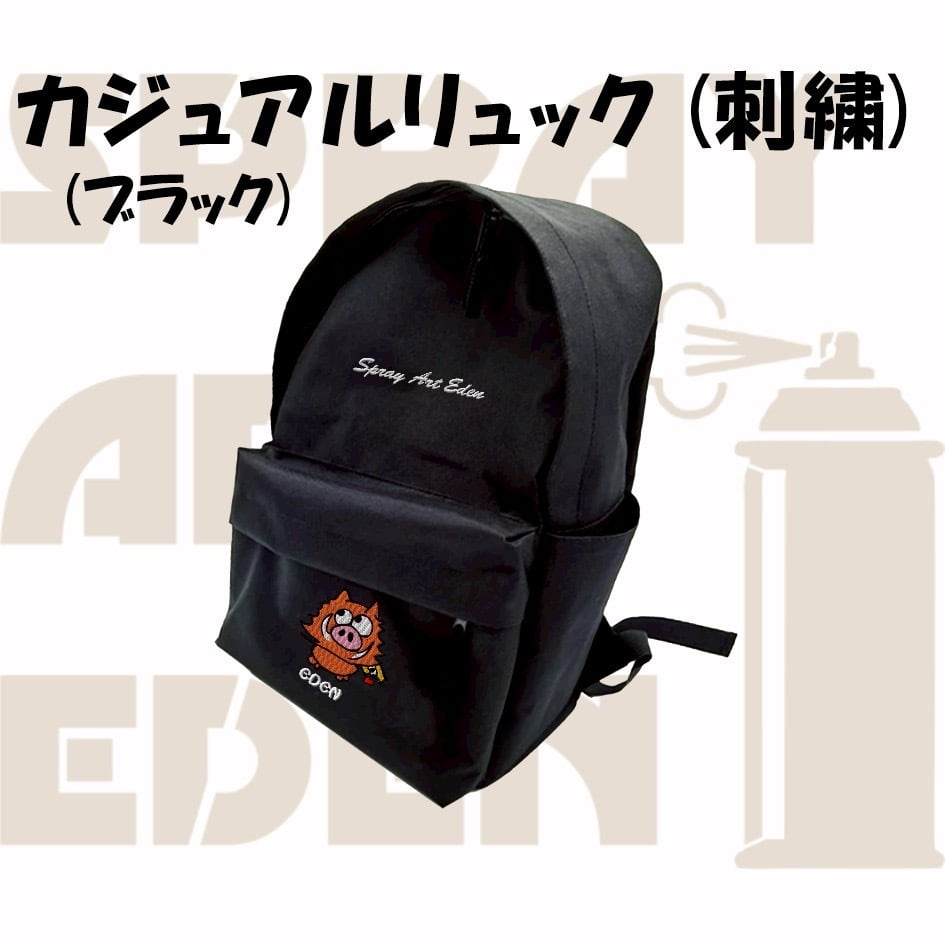 【刺繍・カジュアルリュック (ブラック)】PO297. イノシシ