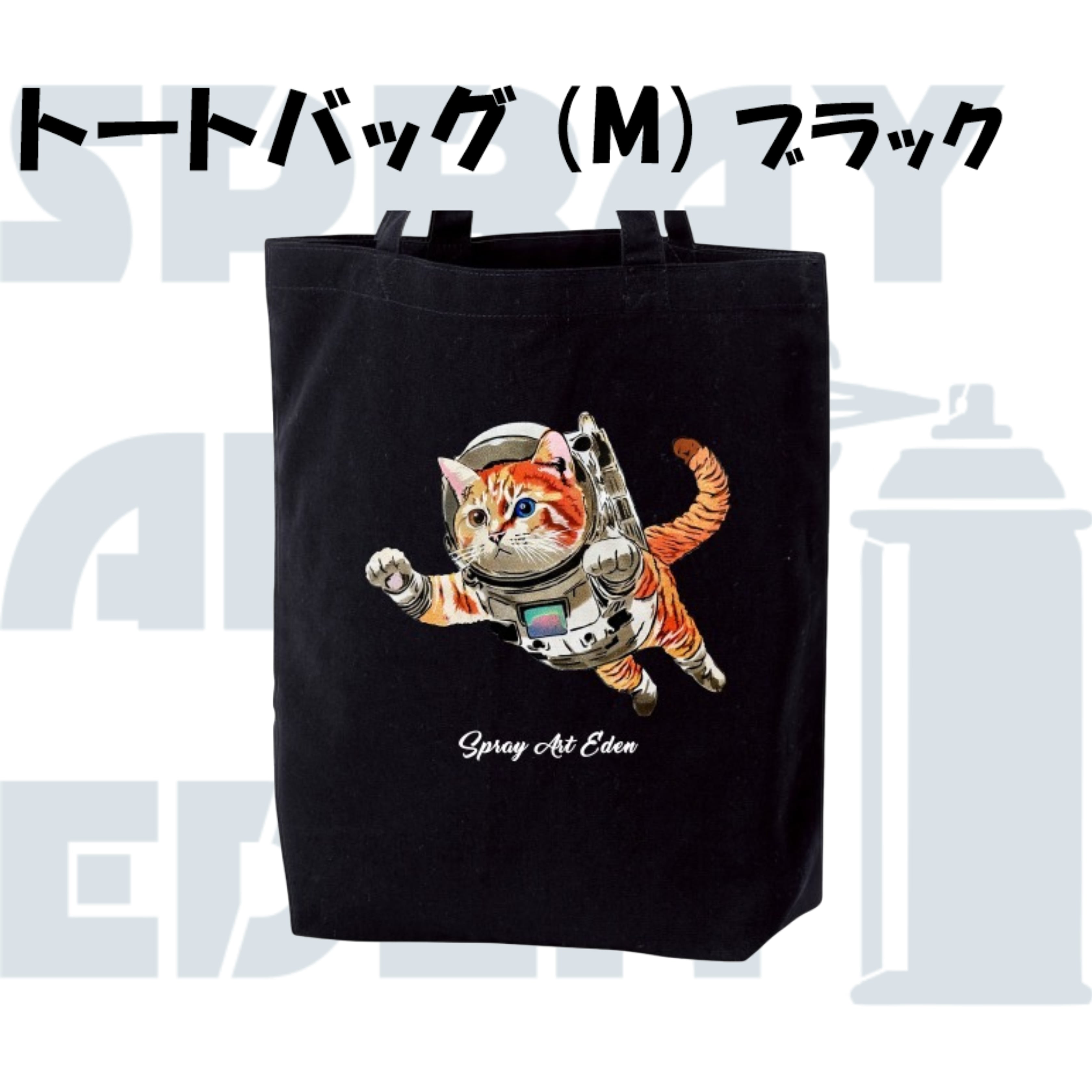 【トートバッグ(M)・ブラック】24175A. 宇宙ネコ