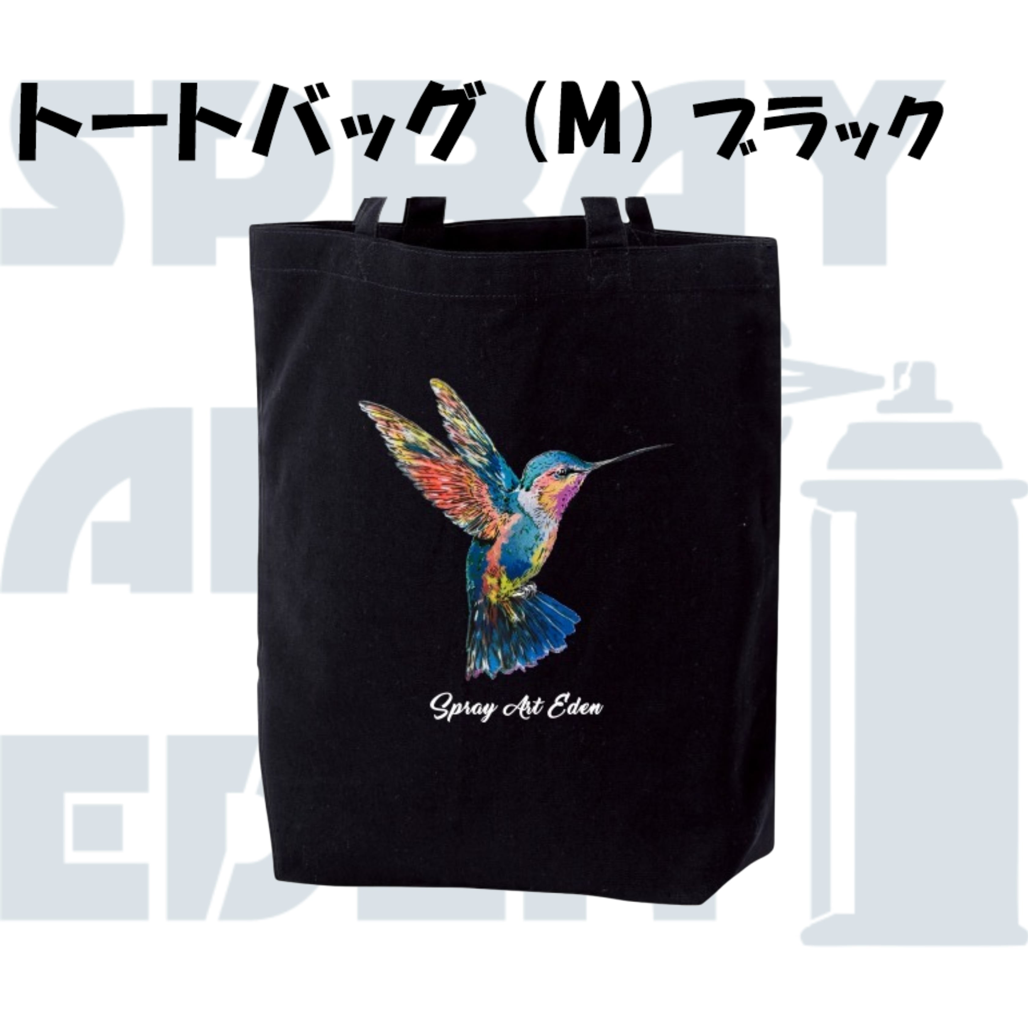 【トートバッグ(M)・ブラック】21335. ハチドリ
