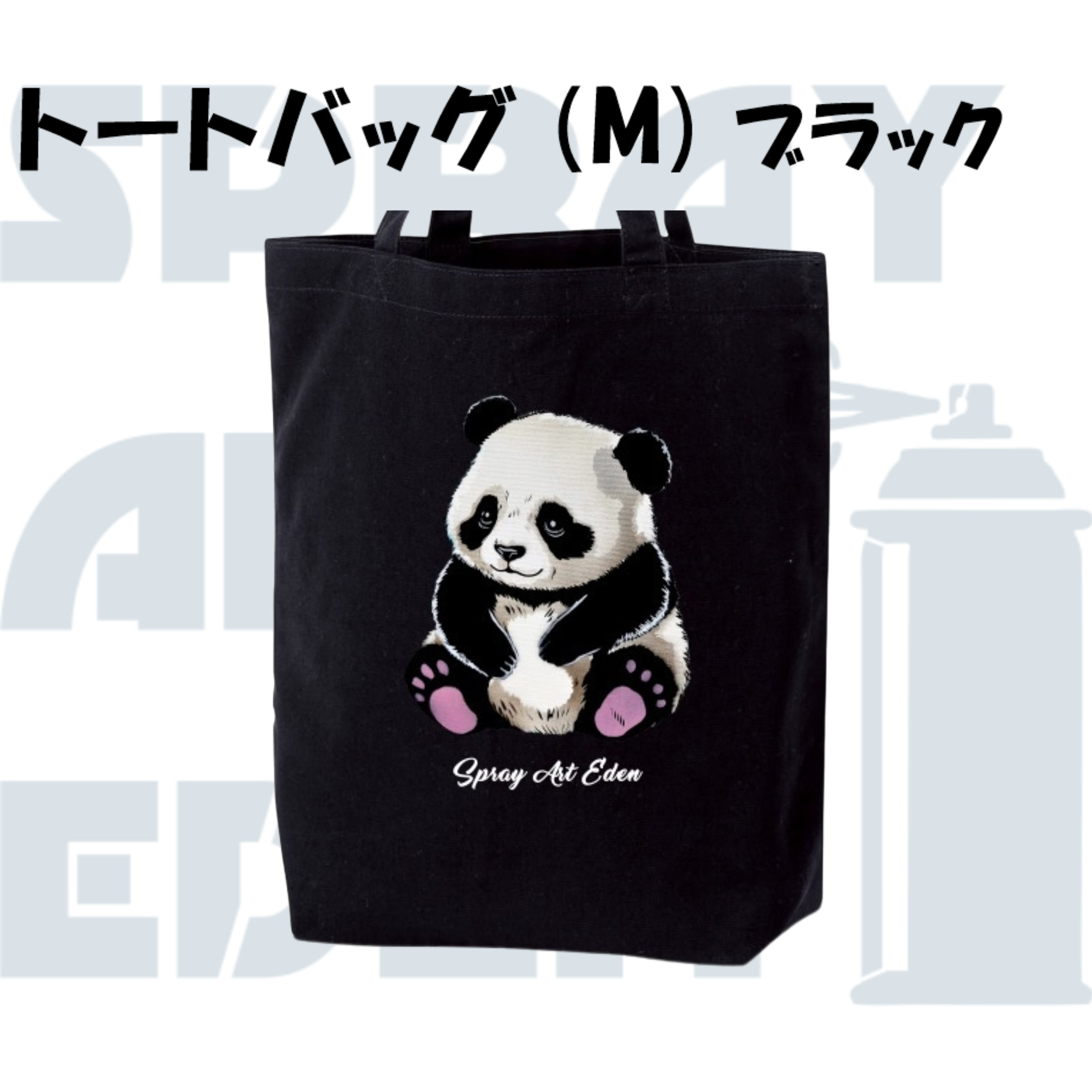 【トートバッグ(M)・ブラック】20416. パンダ