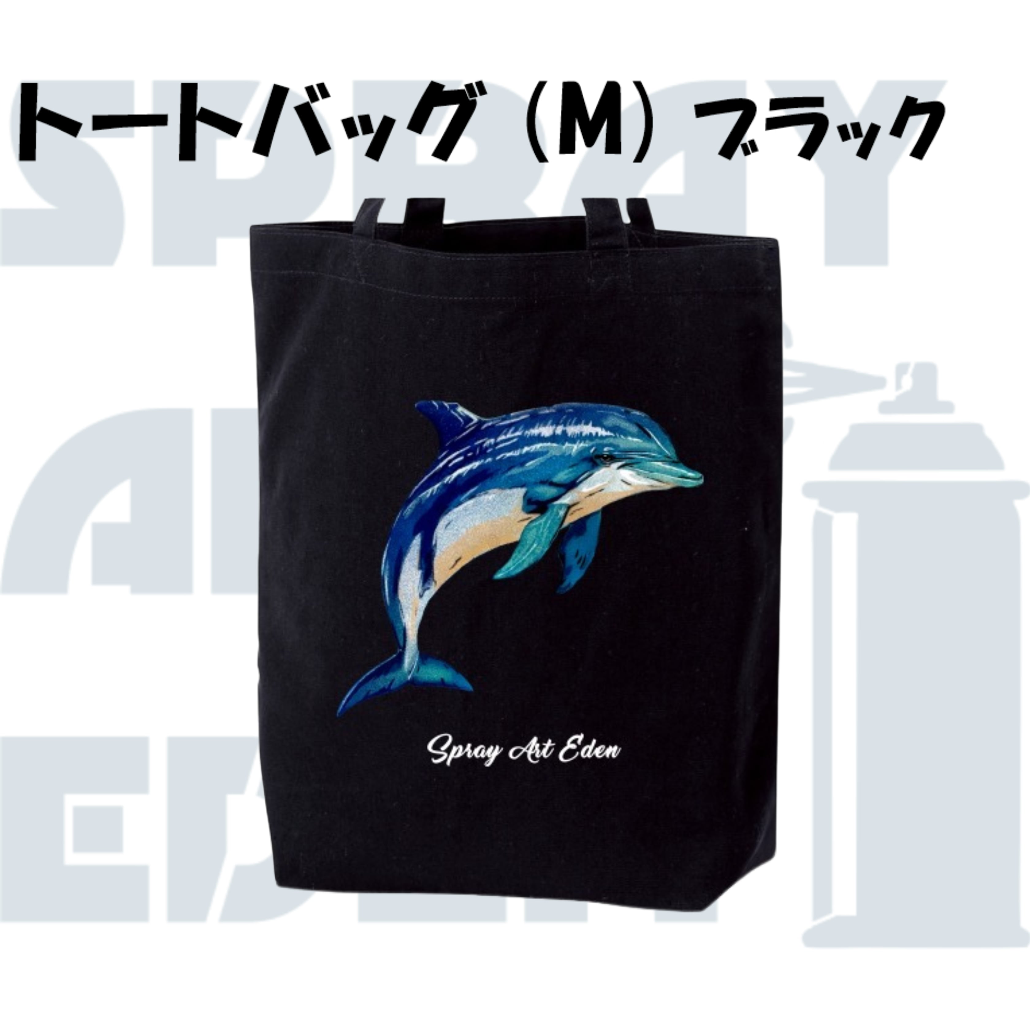 【トートバッグ(M)・ブラック】24265. イルカ