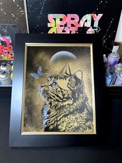 【原画 F6 キャンバス】黒額付 3111. 左向き猫