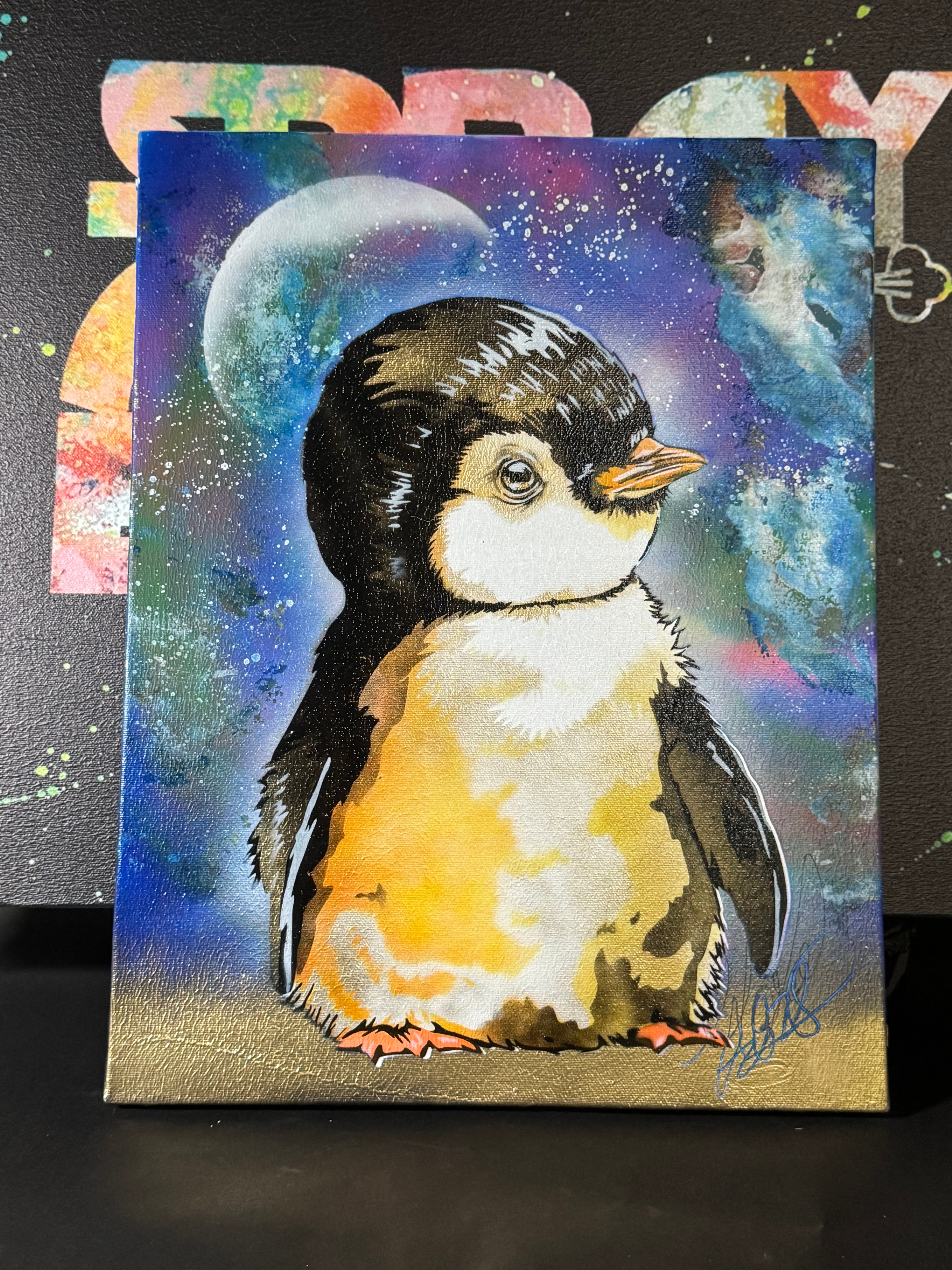【原画 F6 キャンバス】白額付 3140.ベイビーペンギン