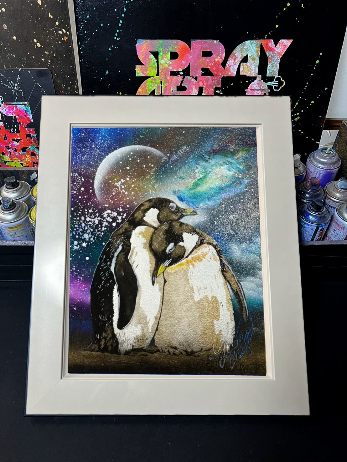 【原画 F6 キャンバス】白額付 3147.カップルペンギン