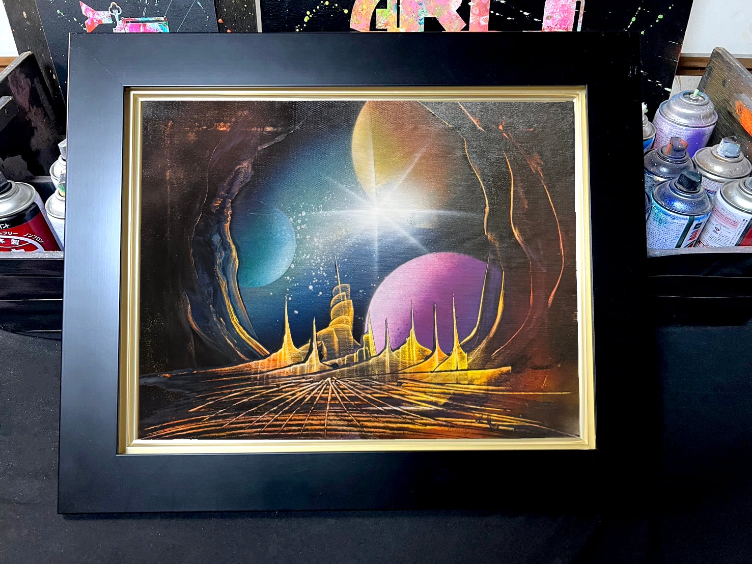 【原画 F6 キャンバス】黒額付 3154.スペースシティ