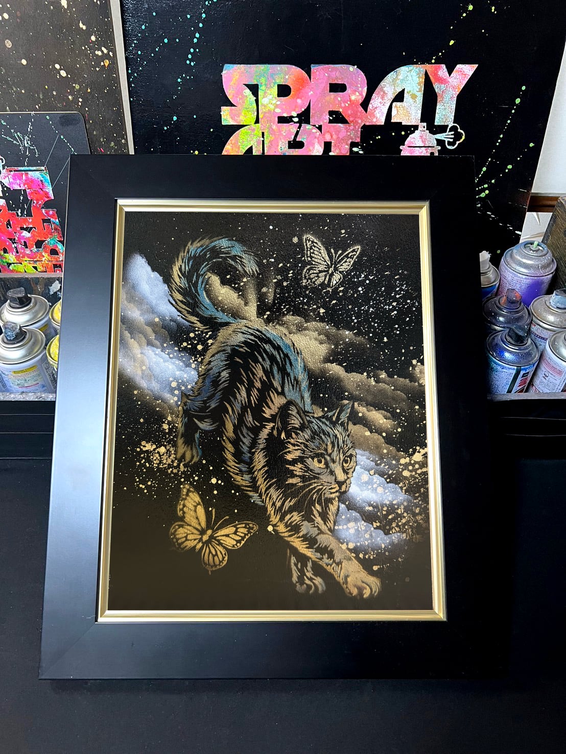 【原画 F6 キャンバス】黒額付 3162. 1-7 猫