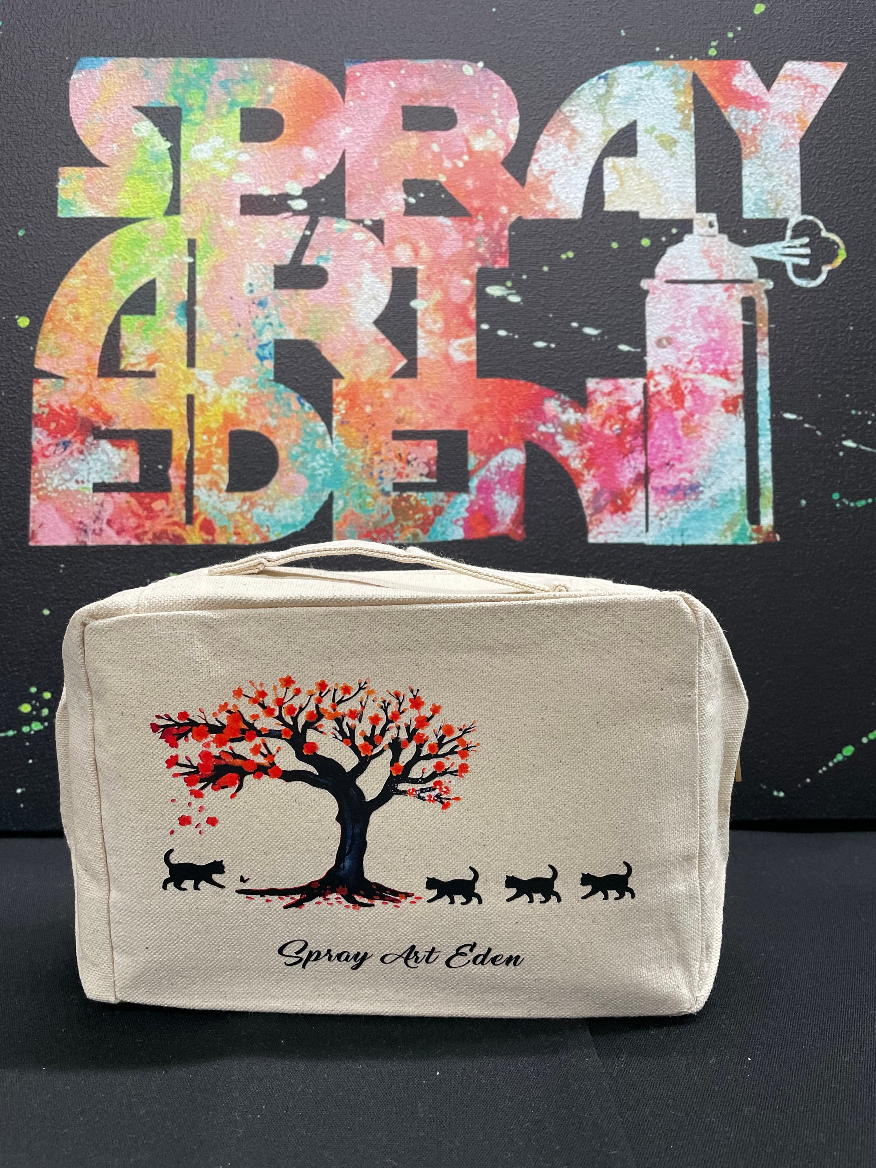 【スクエアボックスポーチ 】 (ベージュ) 24174.桜と猫