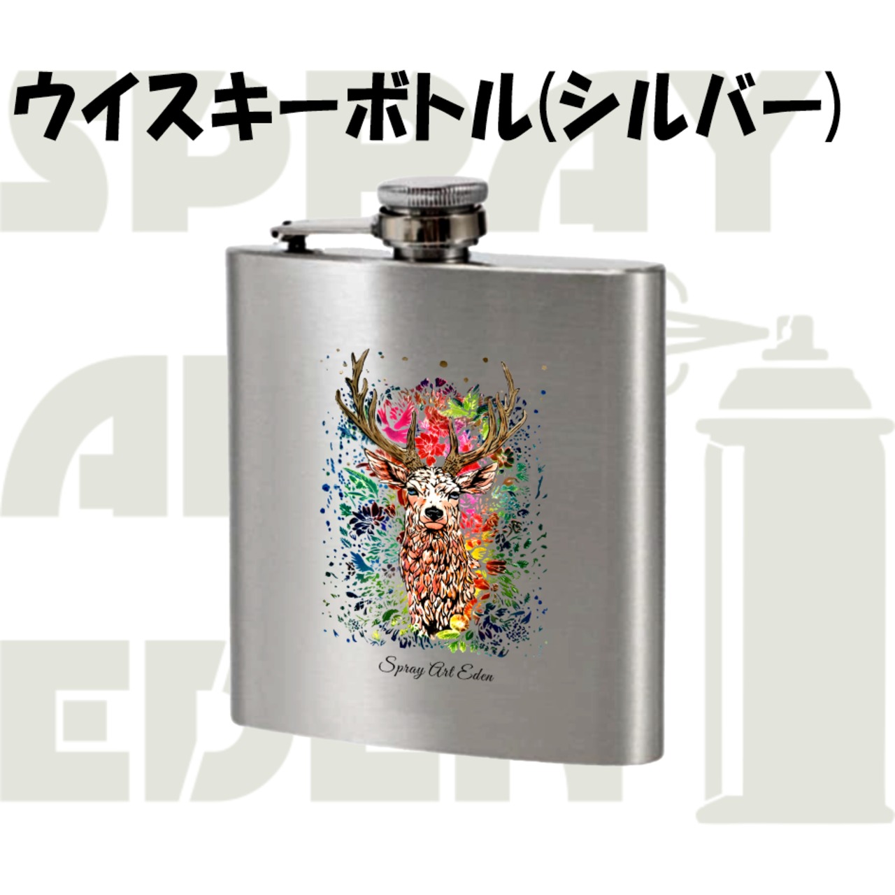 【ウイスキーボトル (シルバー)】20602. 鹿フラワー