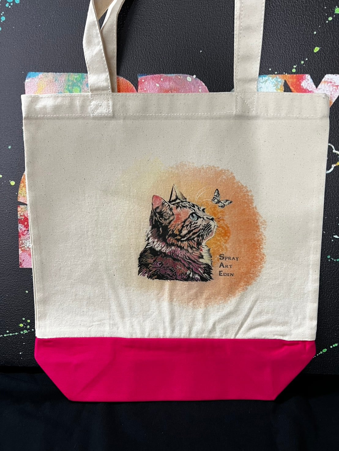 【トートバッグバイカラー(M)・ピンク】20446A.ピンク猫