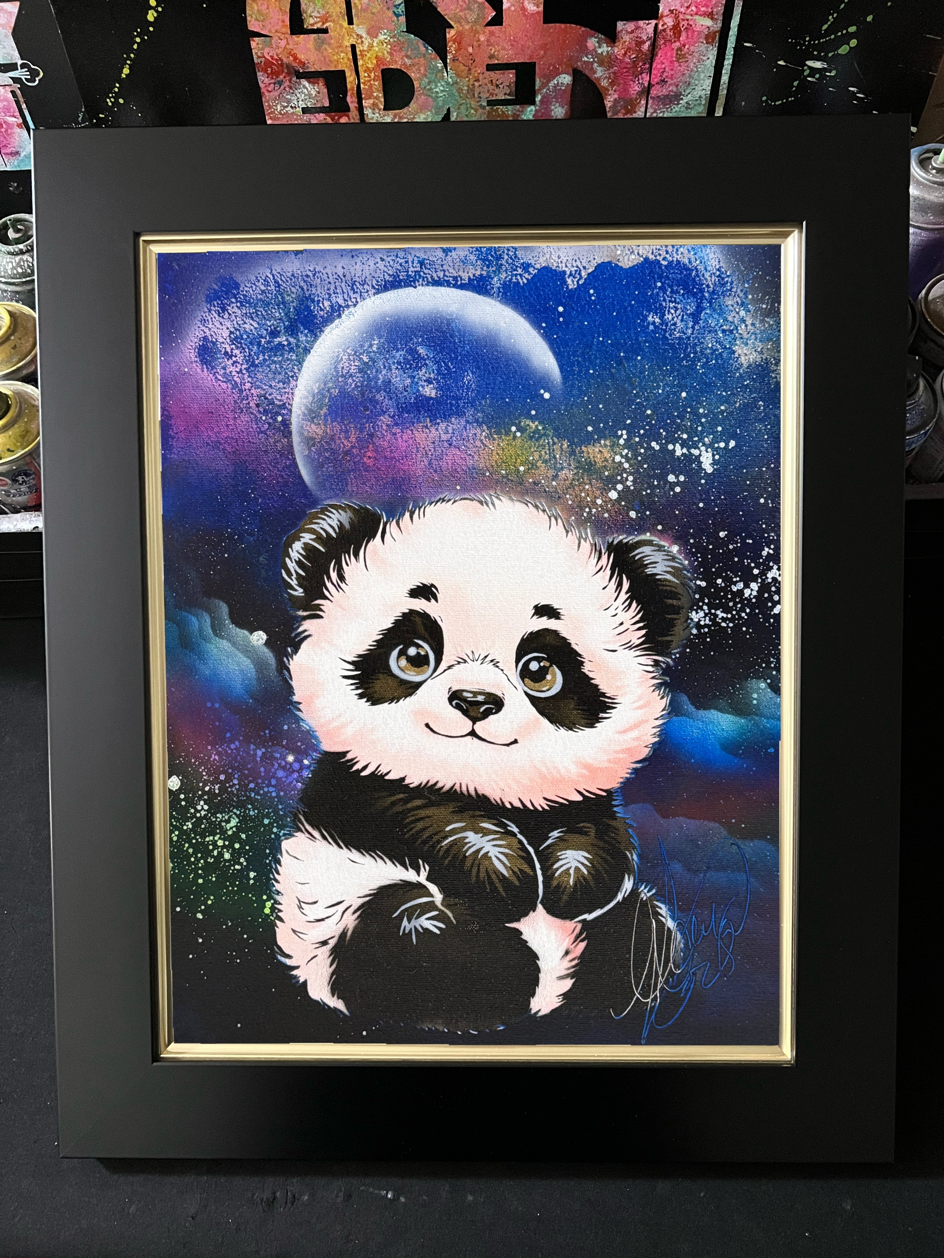 【原画 F6 キャンバス】黒額付 5-2. 3221. ベイビーパンダ